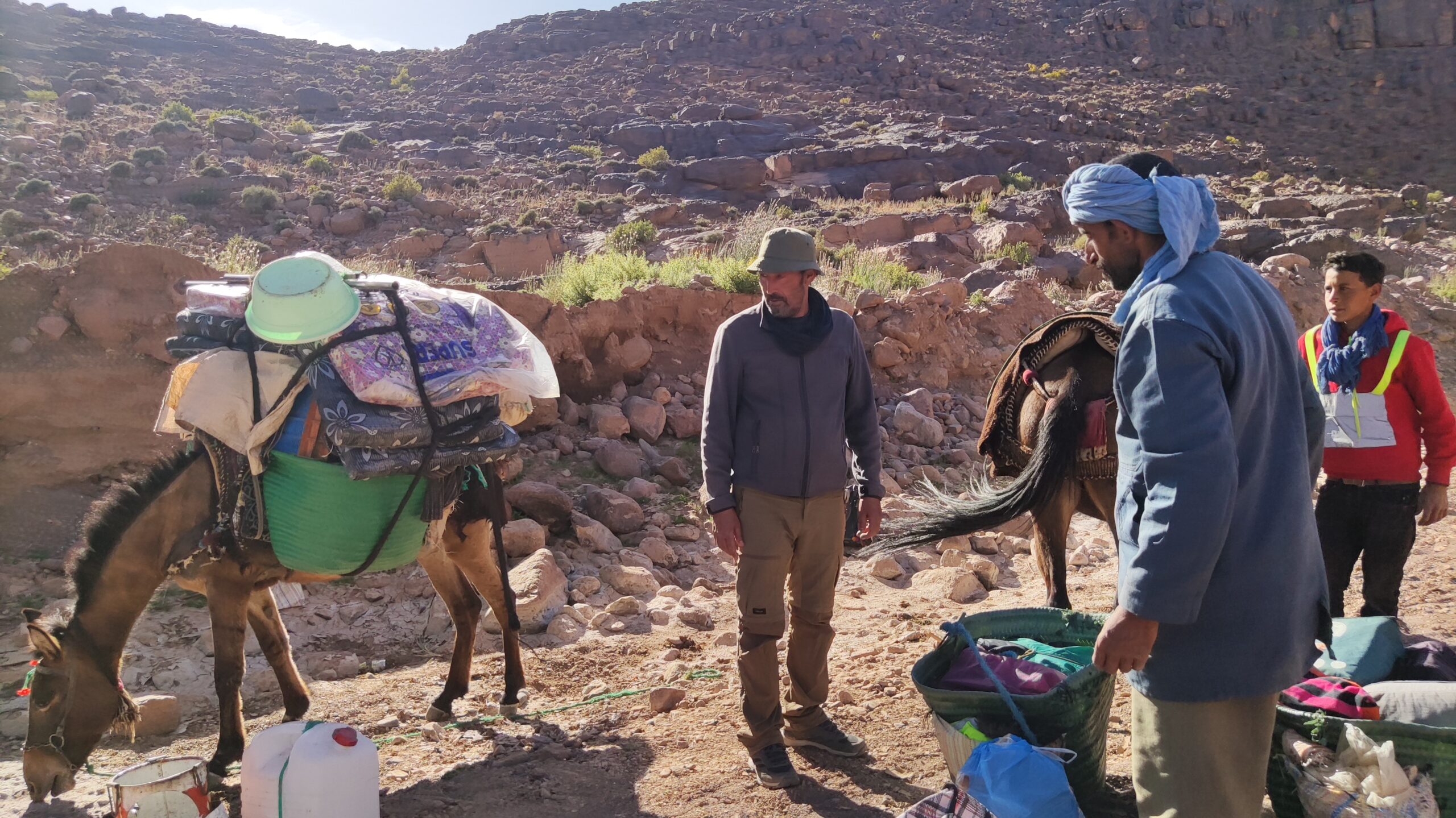 Néanmoins, dans les villes et les villages, il vous est toujours loisible d’acheter des bouteilles d’eau minérale (privilégier les grands contenants type 5L) qui seront portées par les mules, mulets ou dromadaires.